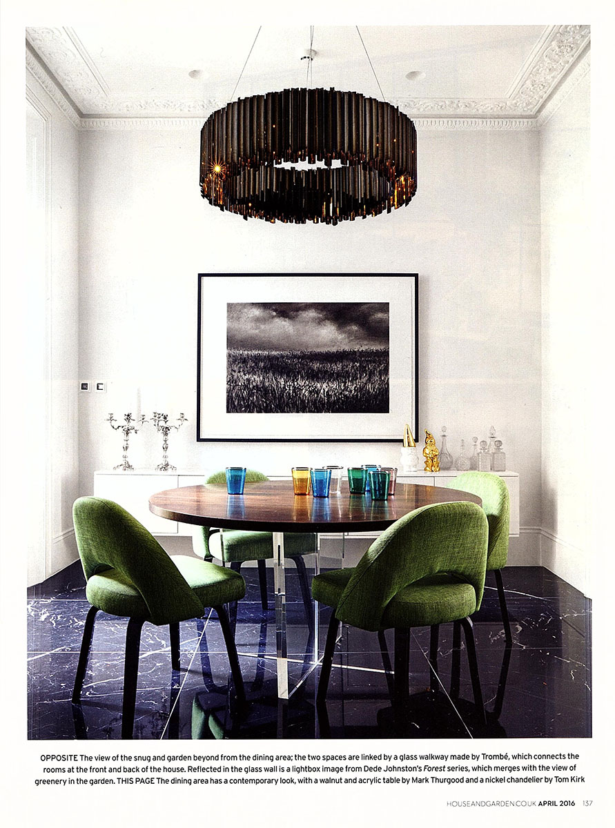 I just wanted to drop you a line to say how fantastic your Linear Chandelier looks in my client’s new dining room. It is a truly stunning piece and sets off the room beautifully. The client is very happy indeed.