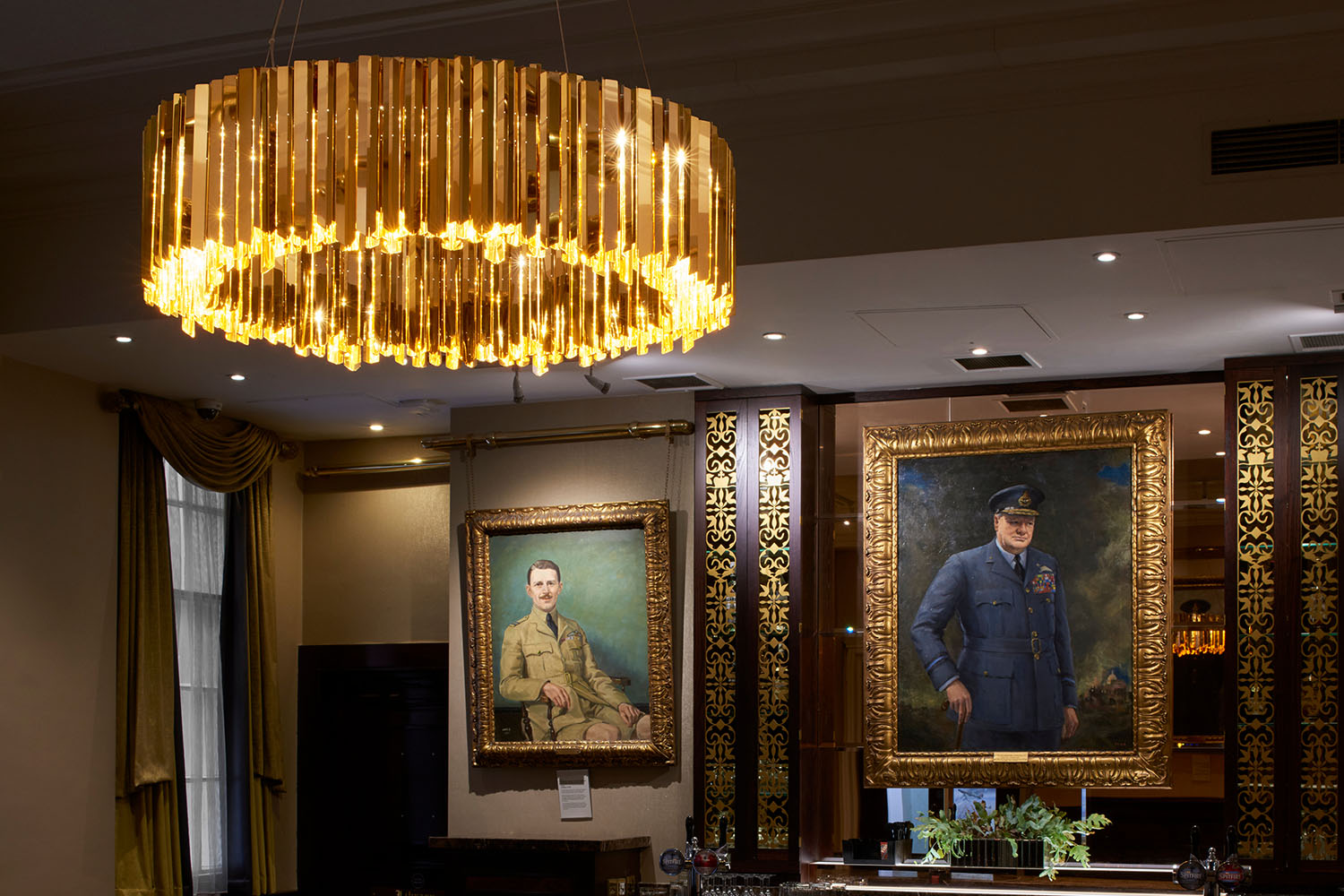 Surrounded by historical portraits of RAF heros and Statesmen, the Facet Chandelier provides a fitting centrepiece in the Churchill Bar.