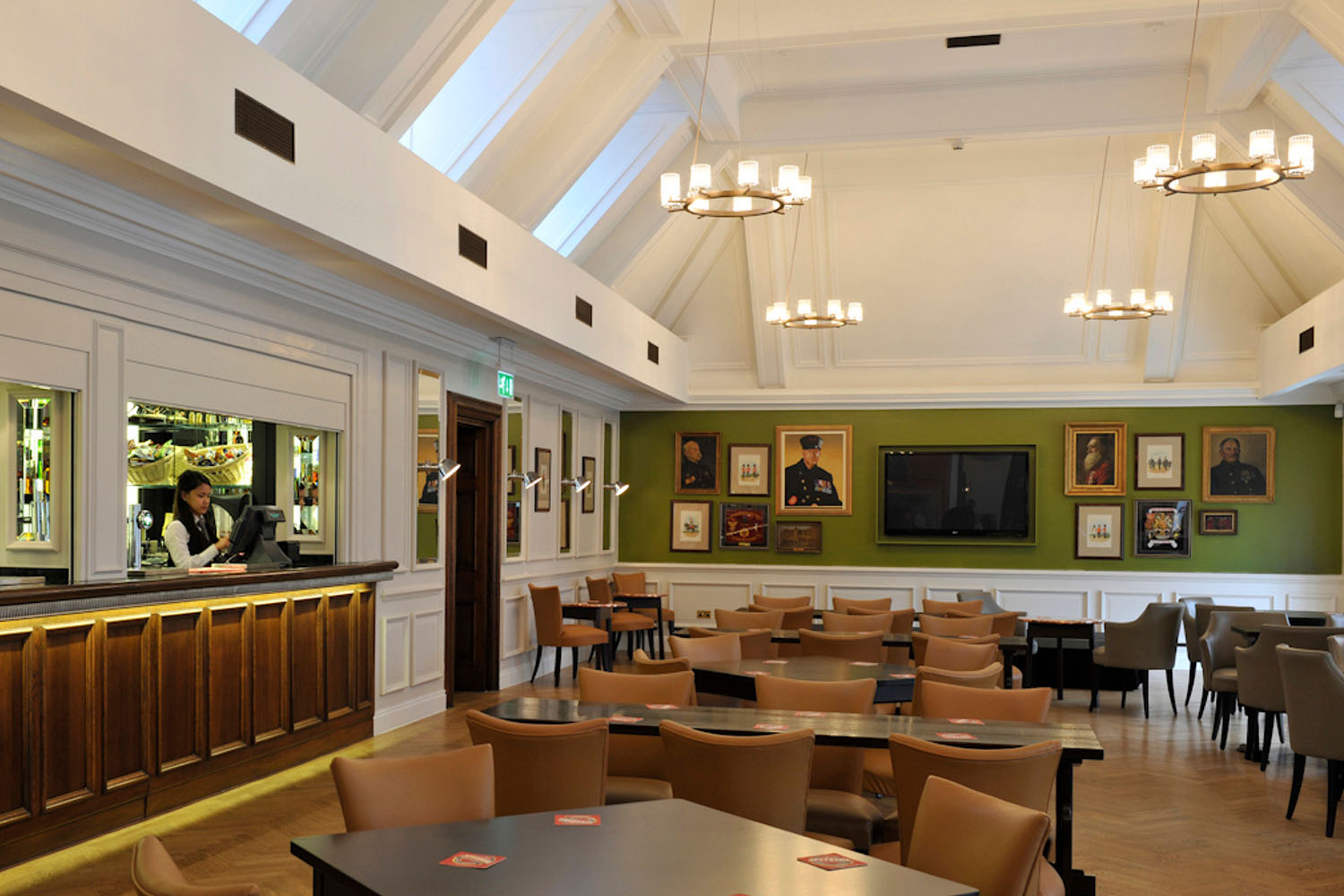 These bronze-powdercoated Flute Chandeliers sit proudly throughout the ground floor lounge areas of the Chelsea Pensioners' quarters at the Royal Hospital Chelsea.