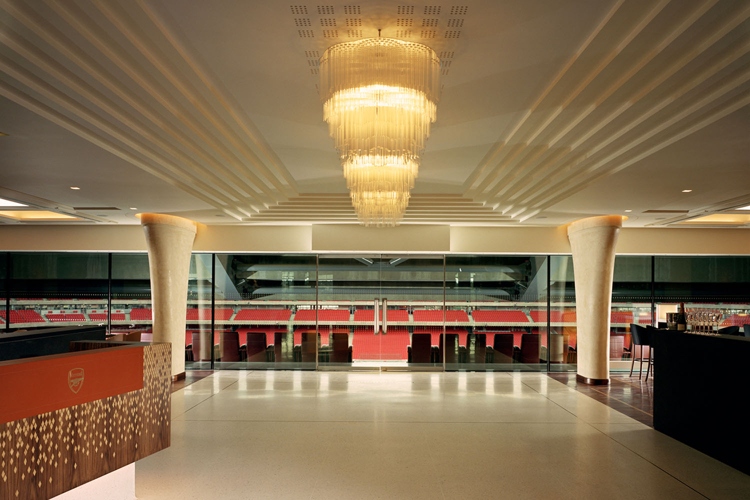 Located in the Diamond Club at London's Emirates Stadium, three Tapered Disc Chandeliers were designed for the main entrance hall- reflecting the exclusivity and grandeur of the space.
