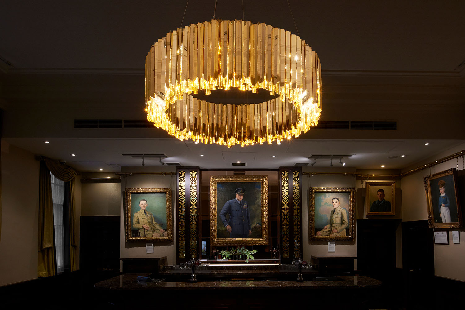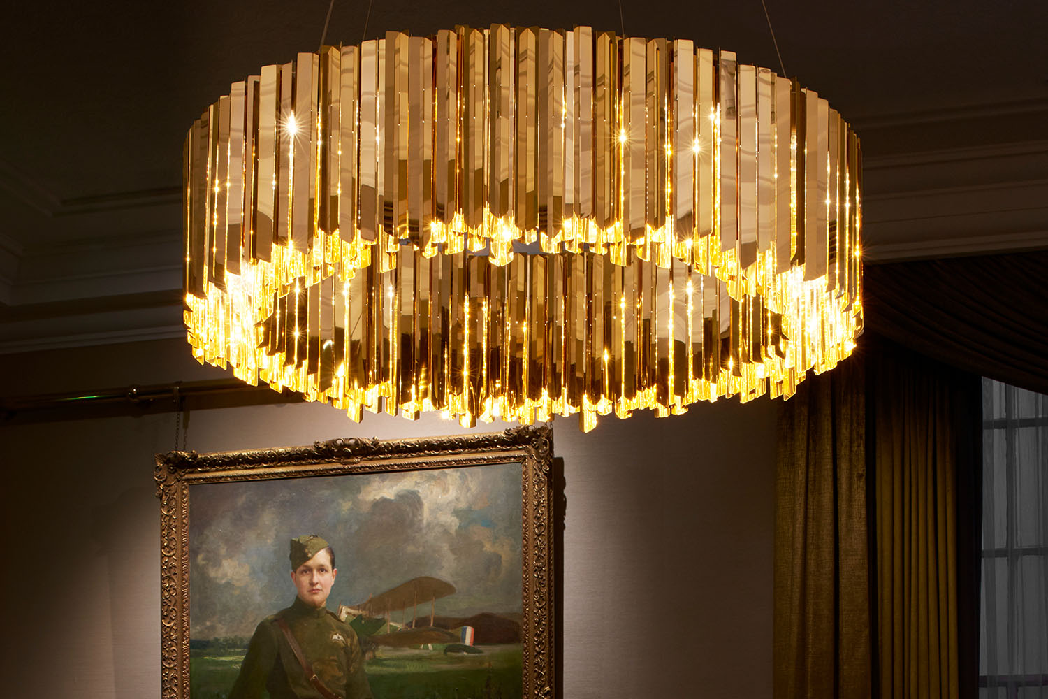 Surrounded by historical portraits of RAF heros and Statesmen, the Facet Chandelier provides a fitting centrepiece in the Churchill Bar.