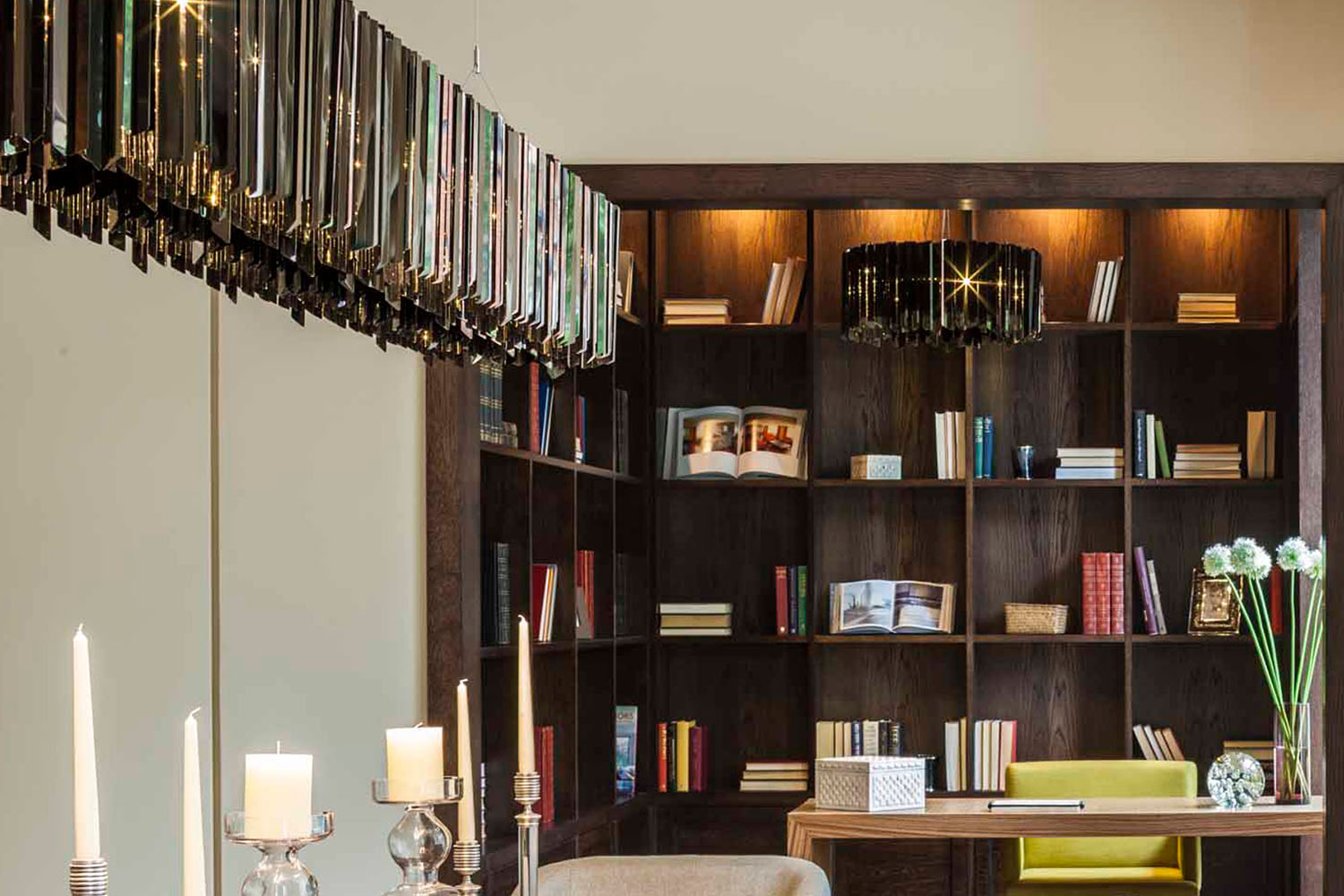 At opposite ends of this large open-plan interior, the Facet Chandeliers sit beautifully in their modern surroundings.