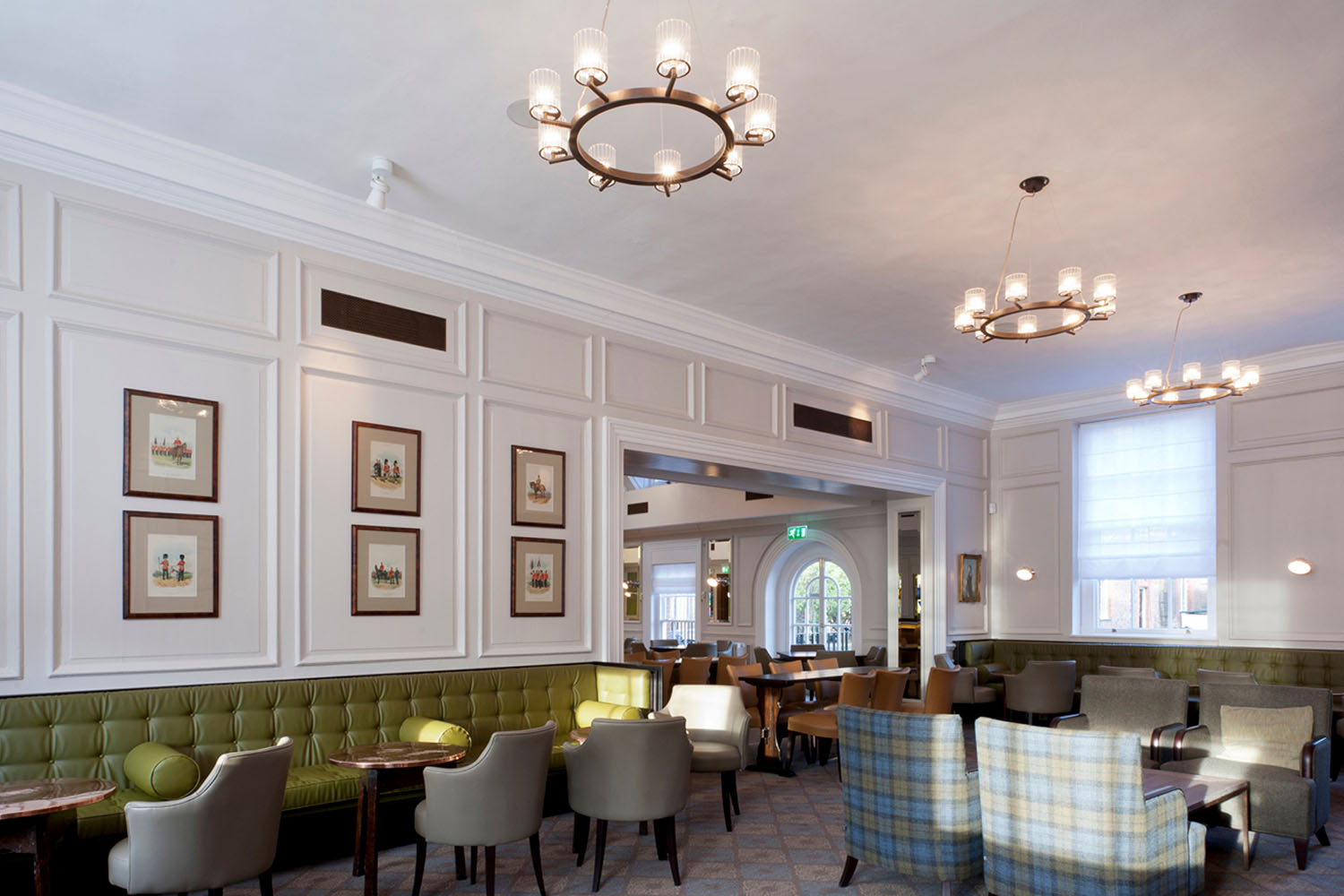 These bronze-powdercoated Flute Chandeliers sit proudly throughout the ground floor lounge areas of the Chelsea Pensioners' quarters at the Royal Hospital Chelsea.