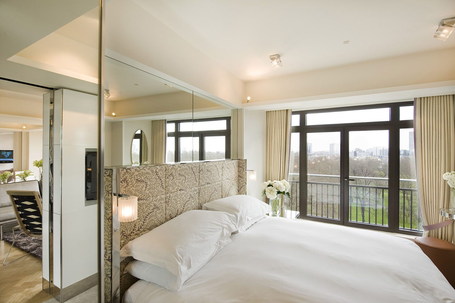 The Flute Wall Light was custom made in two versions for the hotel. Designed to be built into the headboards of the beds, the lights were used in the bedrooms and suites at this Mayfair hotel.