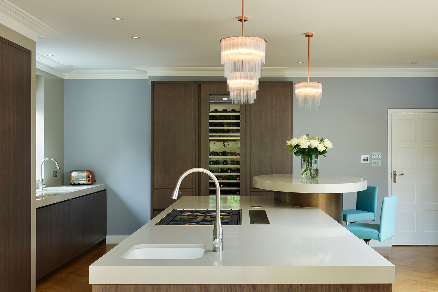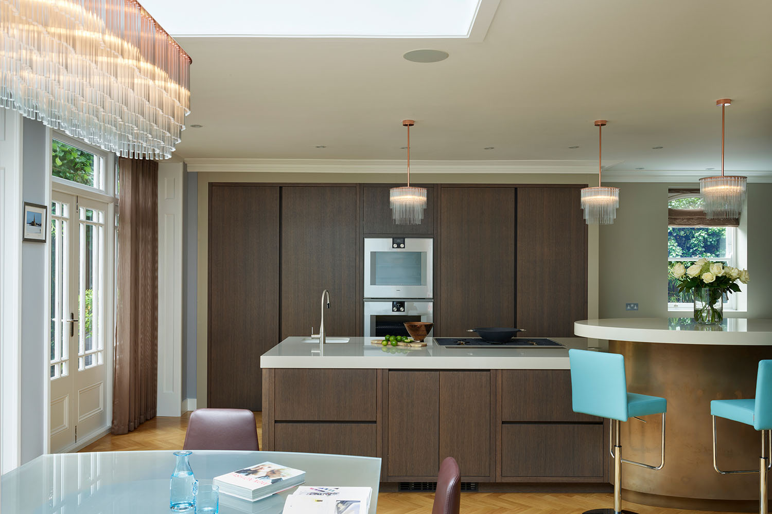 A selection of customised pendants, wall lights and a large Linear Chandelier were specified for this spacious, contemporary interior.
