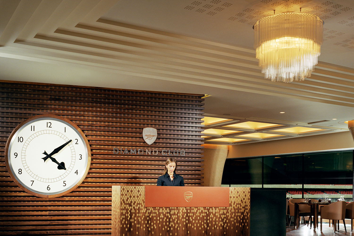 Located in the Diamond Club at London's Emirates Stadium, three Tapered Disc Chandeliers were designed for the main entrance hall- reflecting the exclusivity and grandeur of the space.